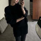 ドロップショルダーのニットはゆったりとしたシルエットで、リラックスした雰囲気を演出。