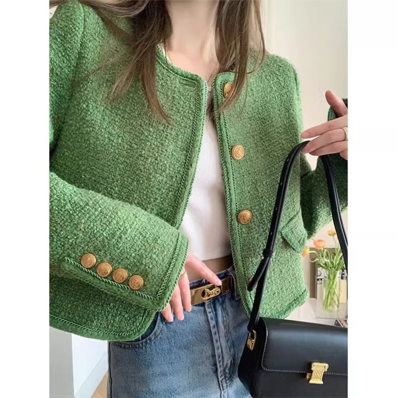 程よくカジュアルダウンできるクロップド丈のツイードジャケット。