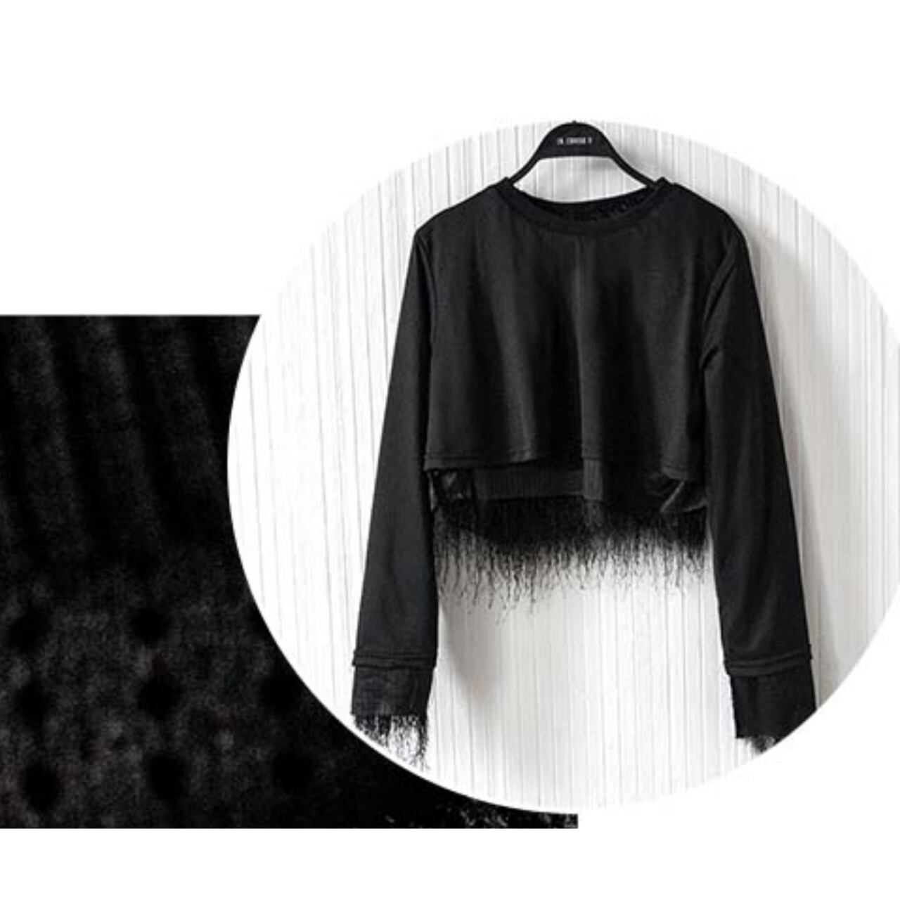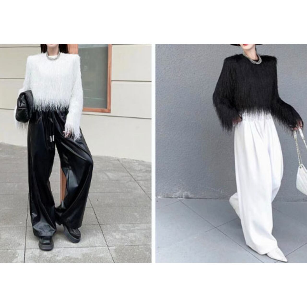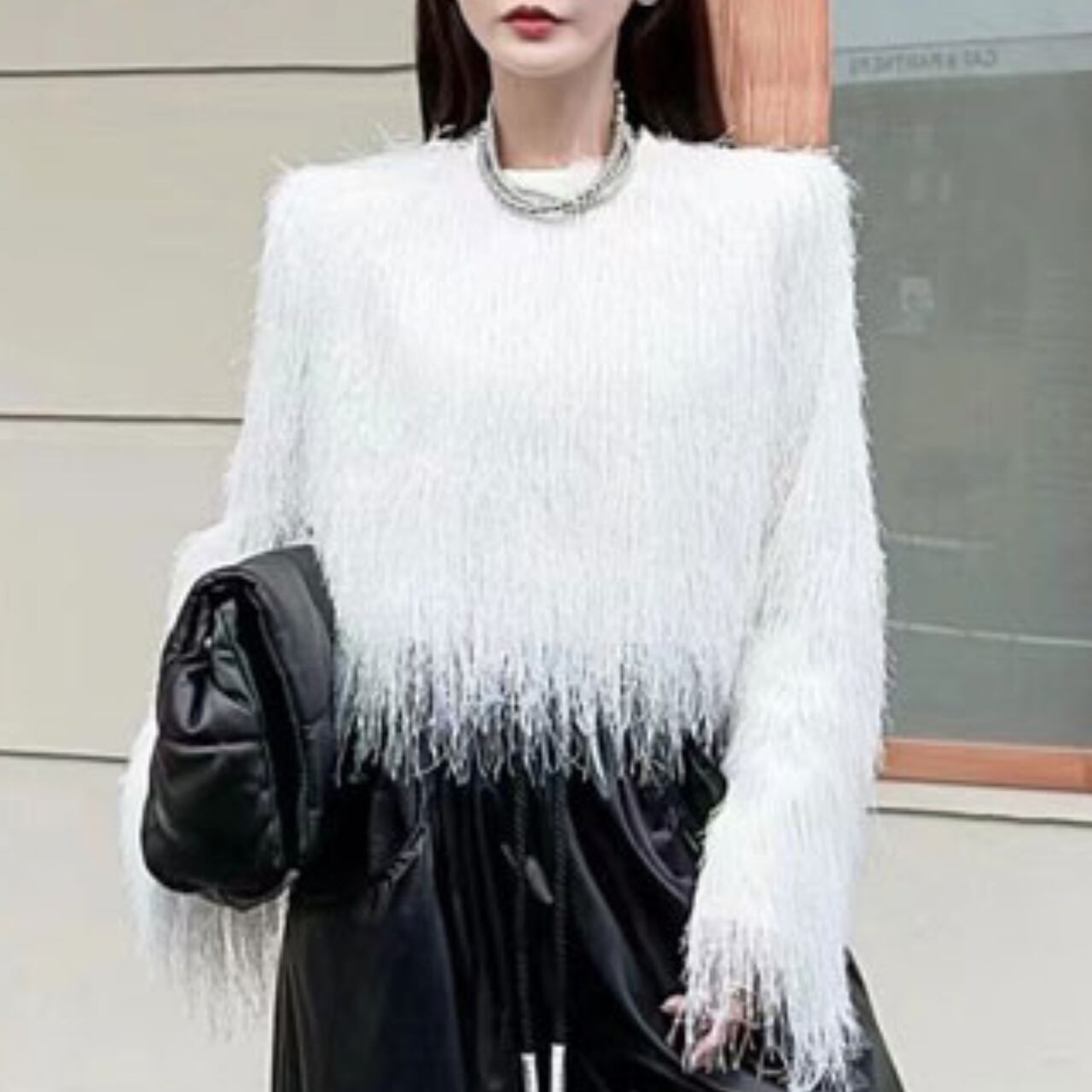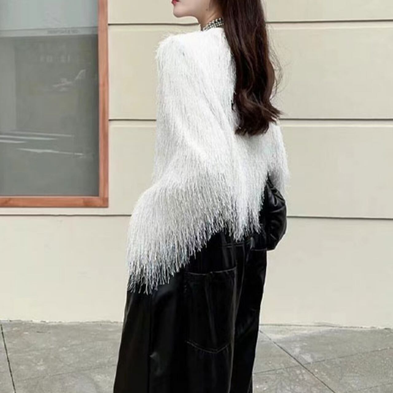 長袖で暖かく、裾のフリンジが動くたびに軽やかな印象を与えます。