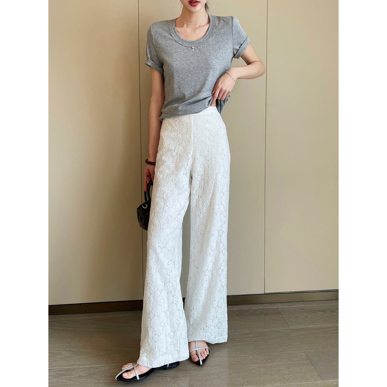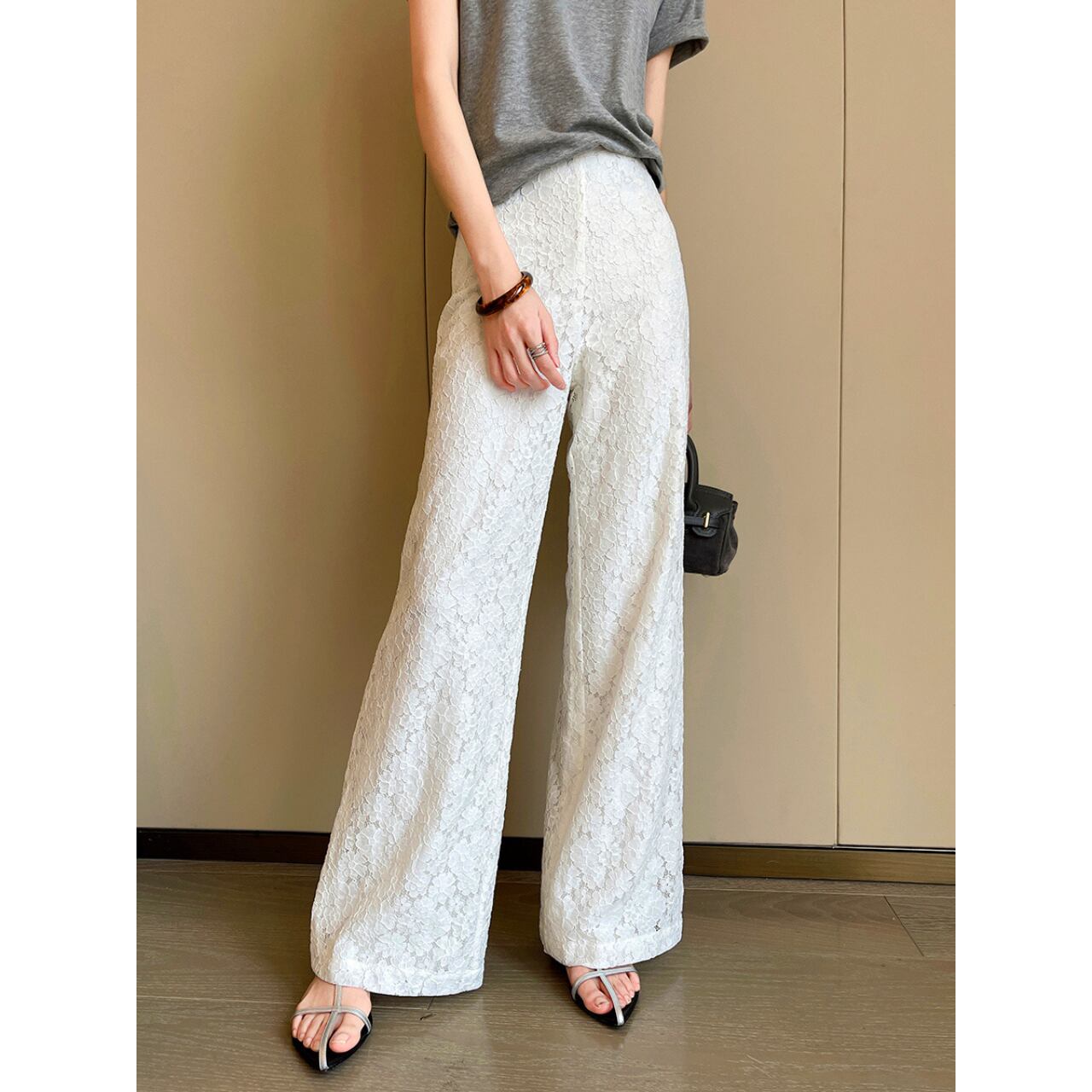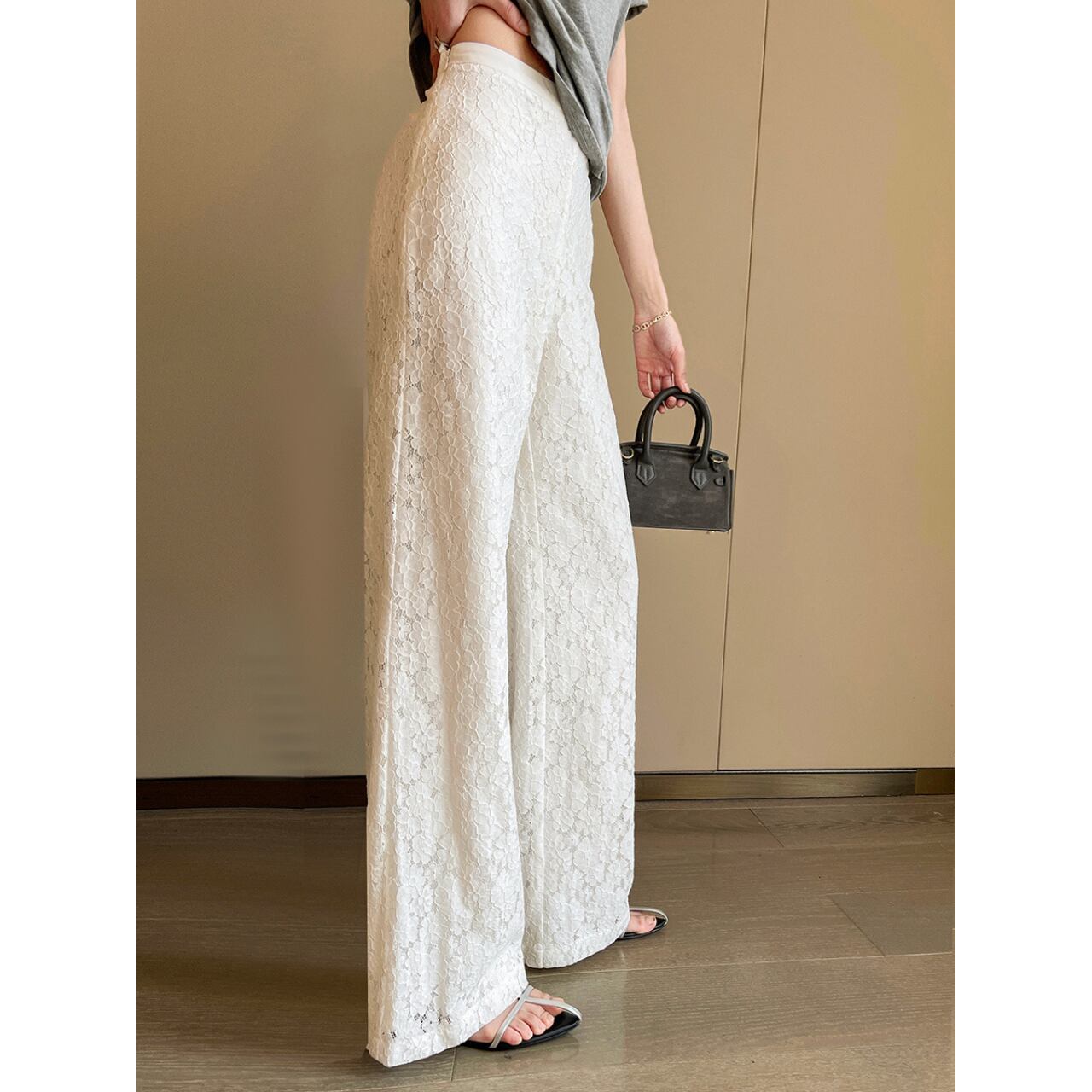 デイリーコーデをワンランクアップさせる、ハイウエストレースワイドパンツ。