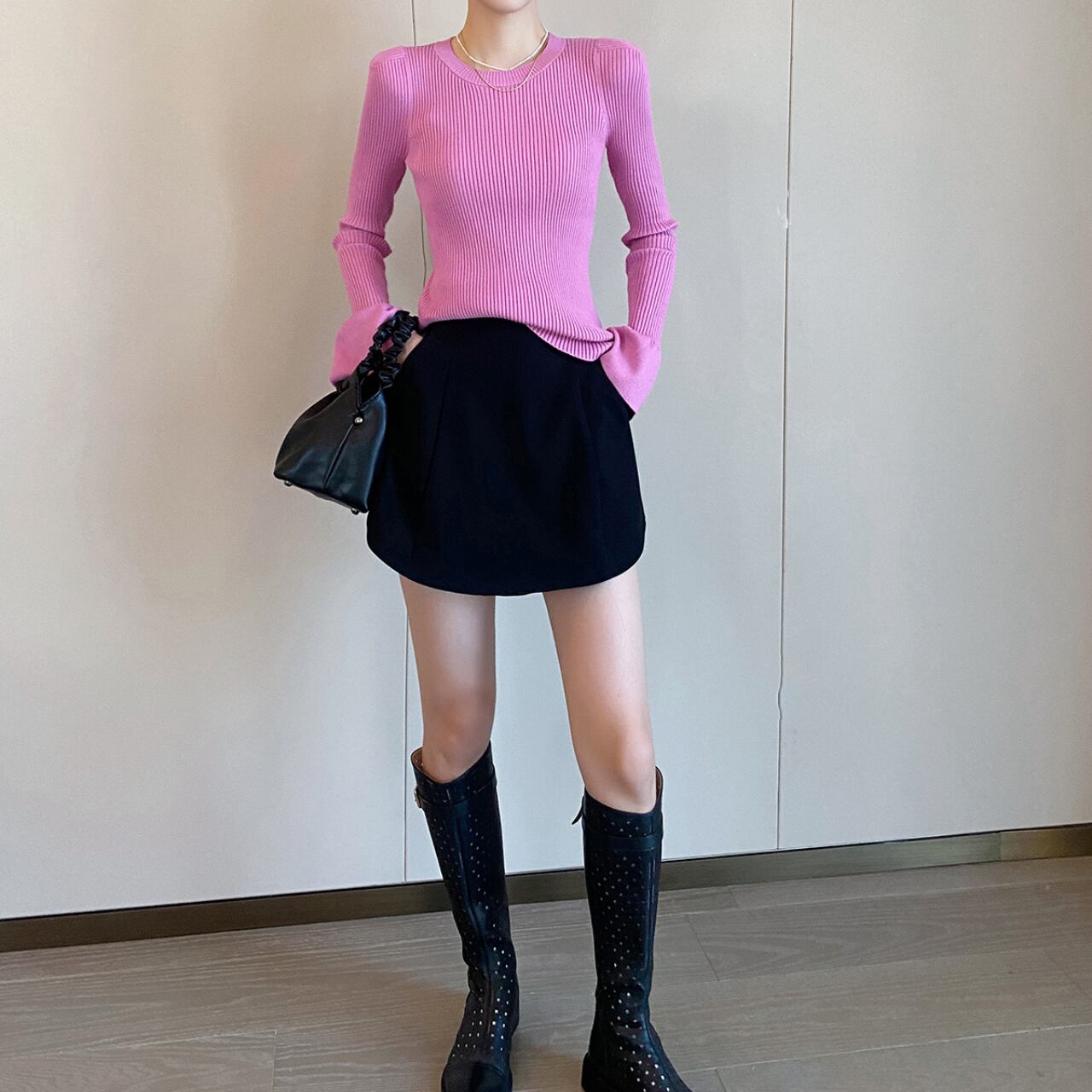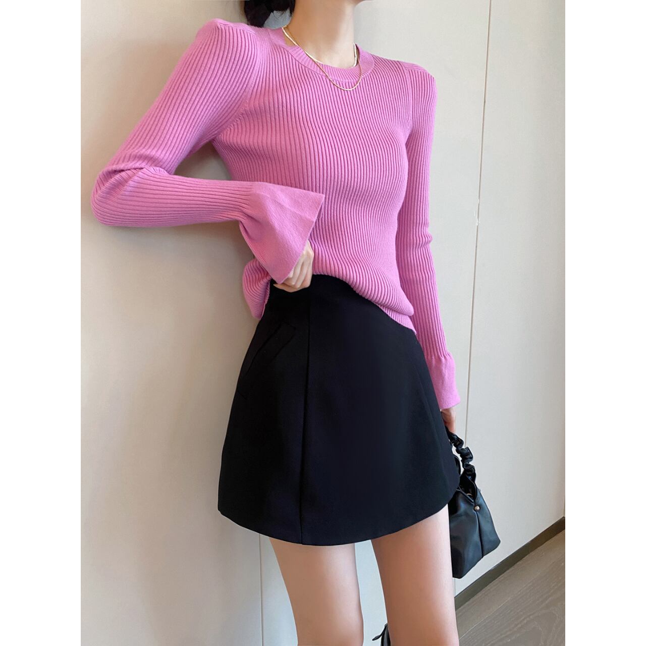すっきりとしたシルエットが魅力のミニ丈スカート。