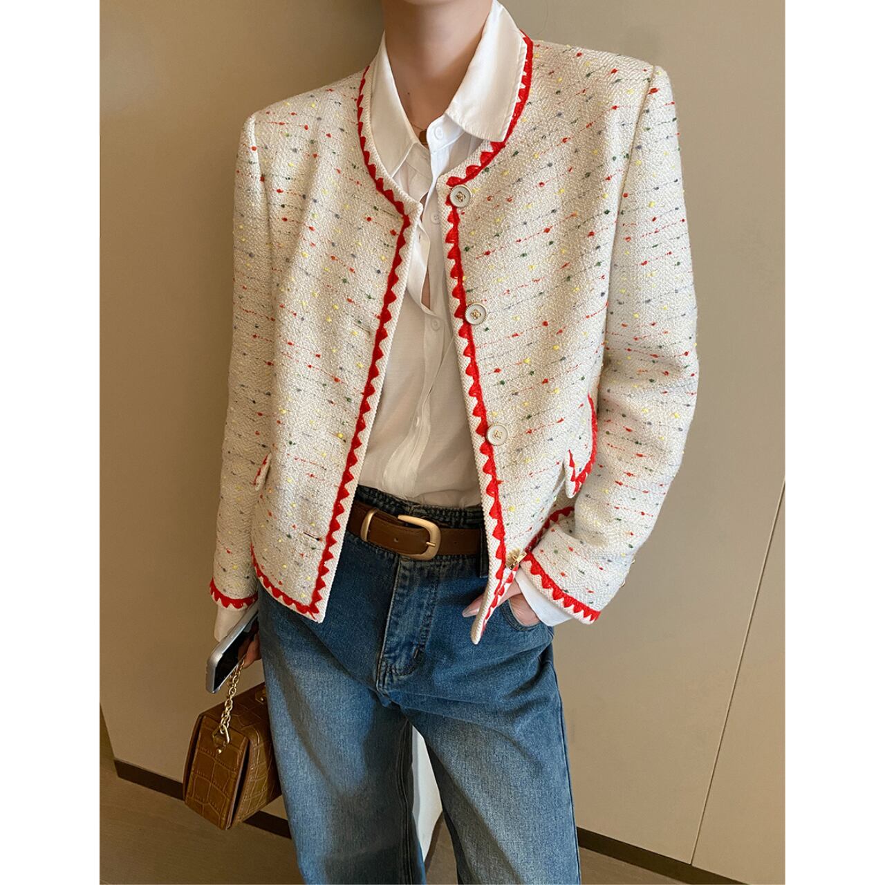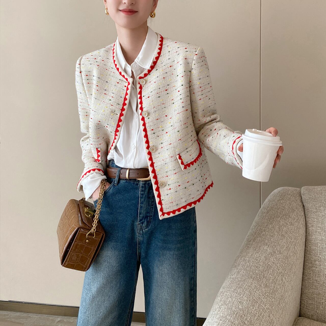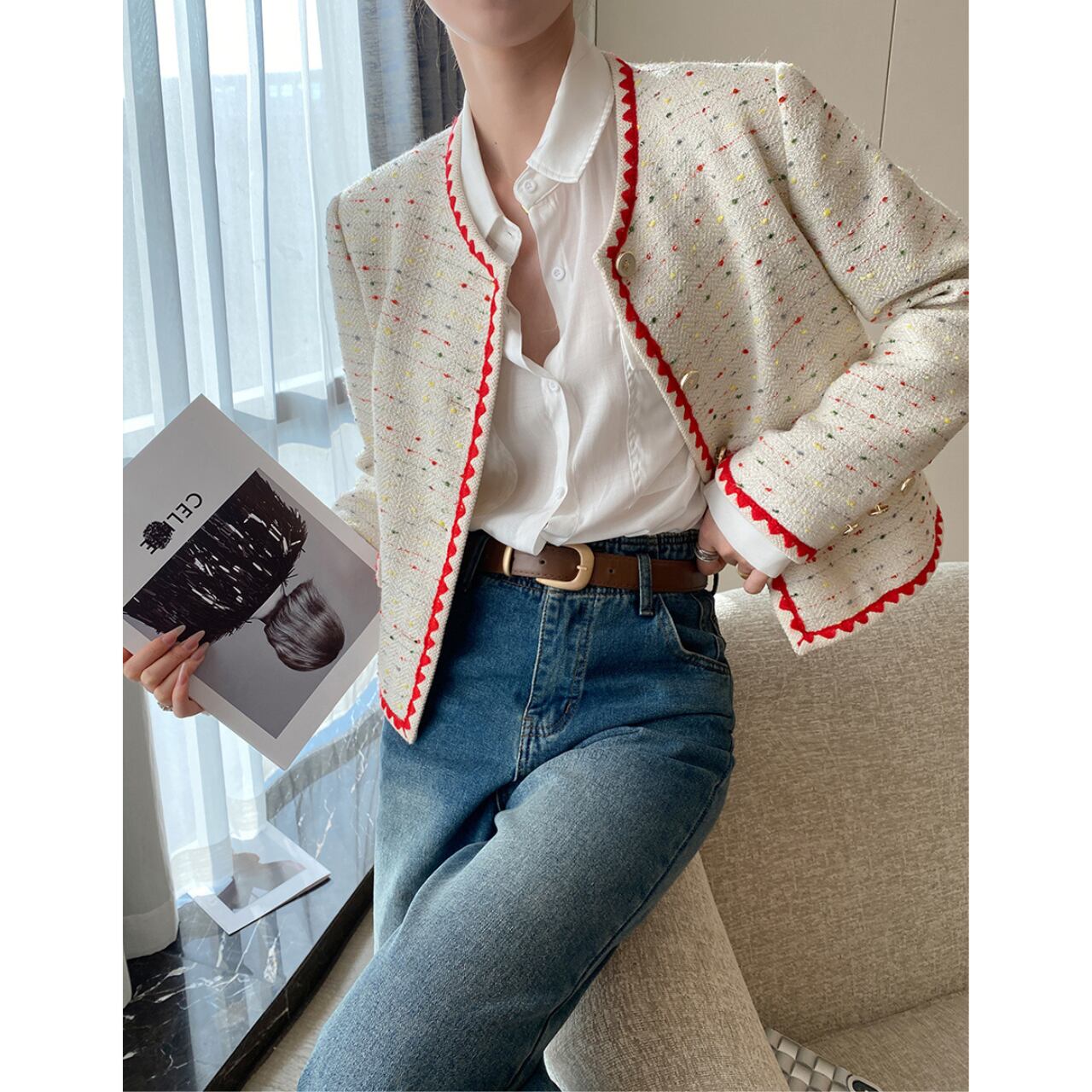 爽やかな色合いのツイード素材が、春の装いに軽やかさをプラスします。