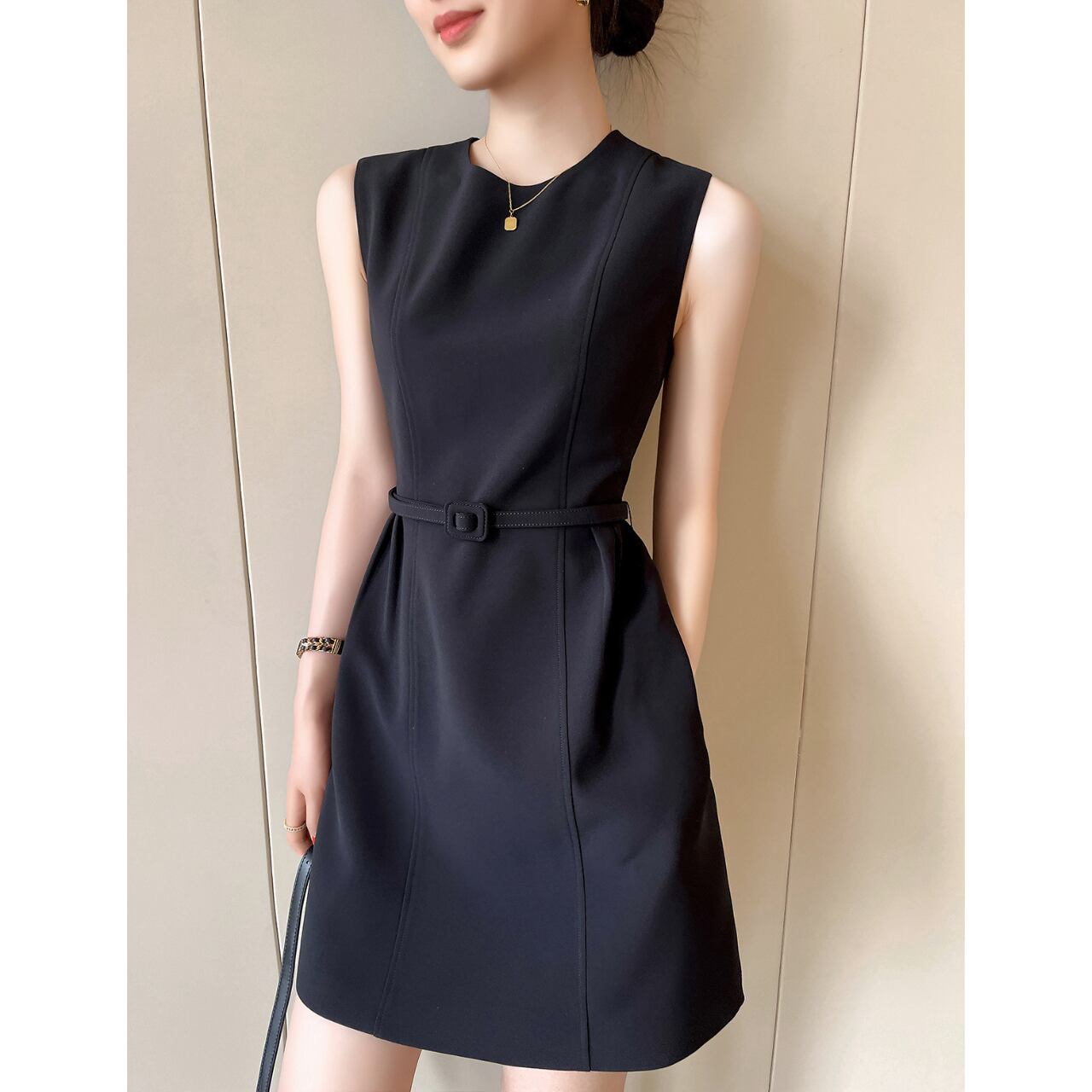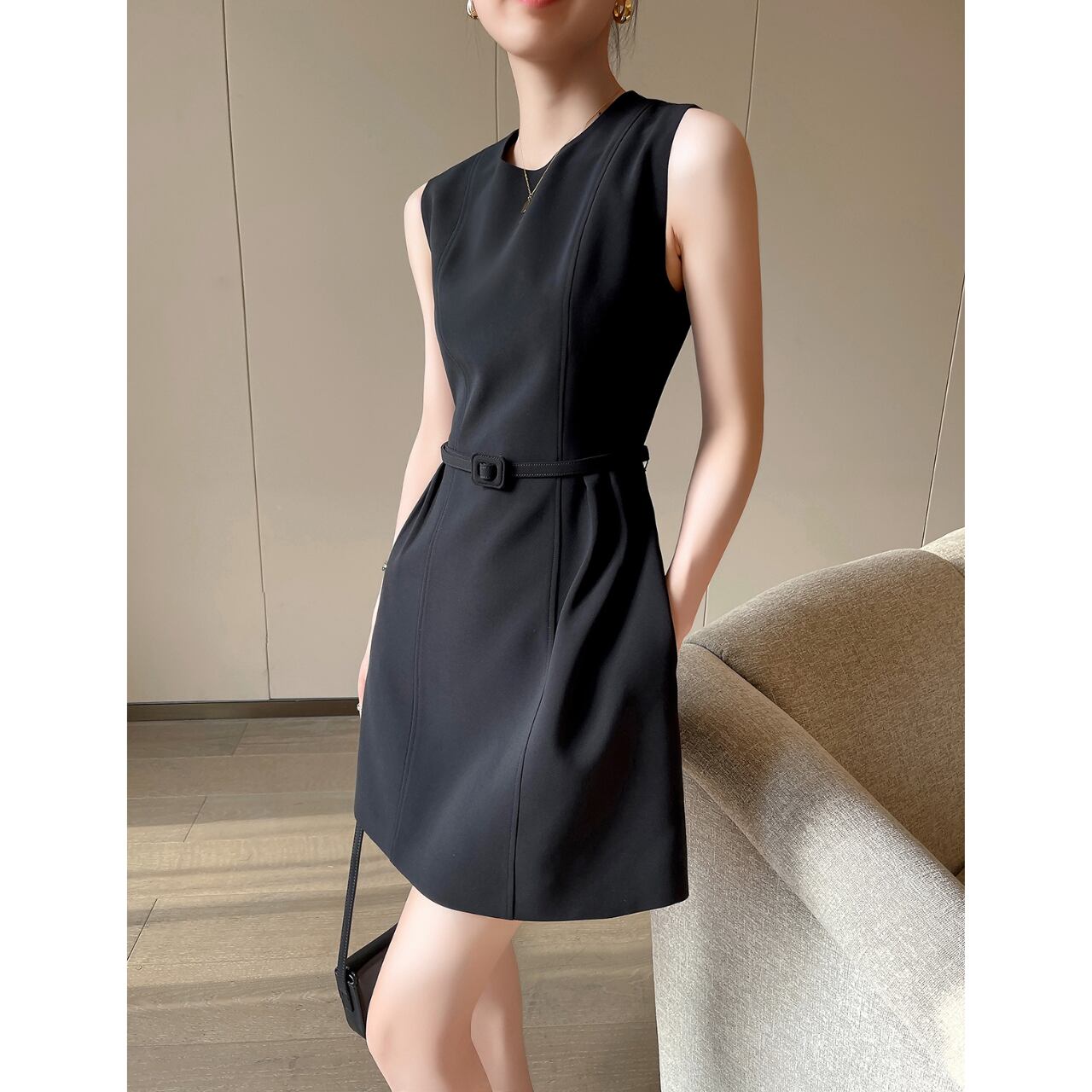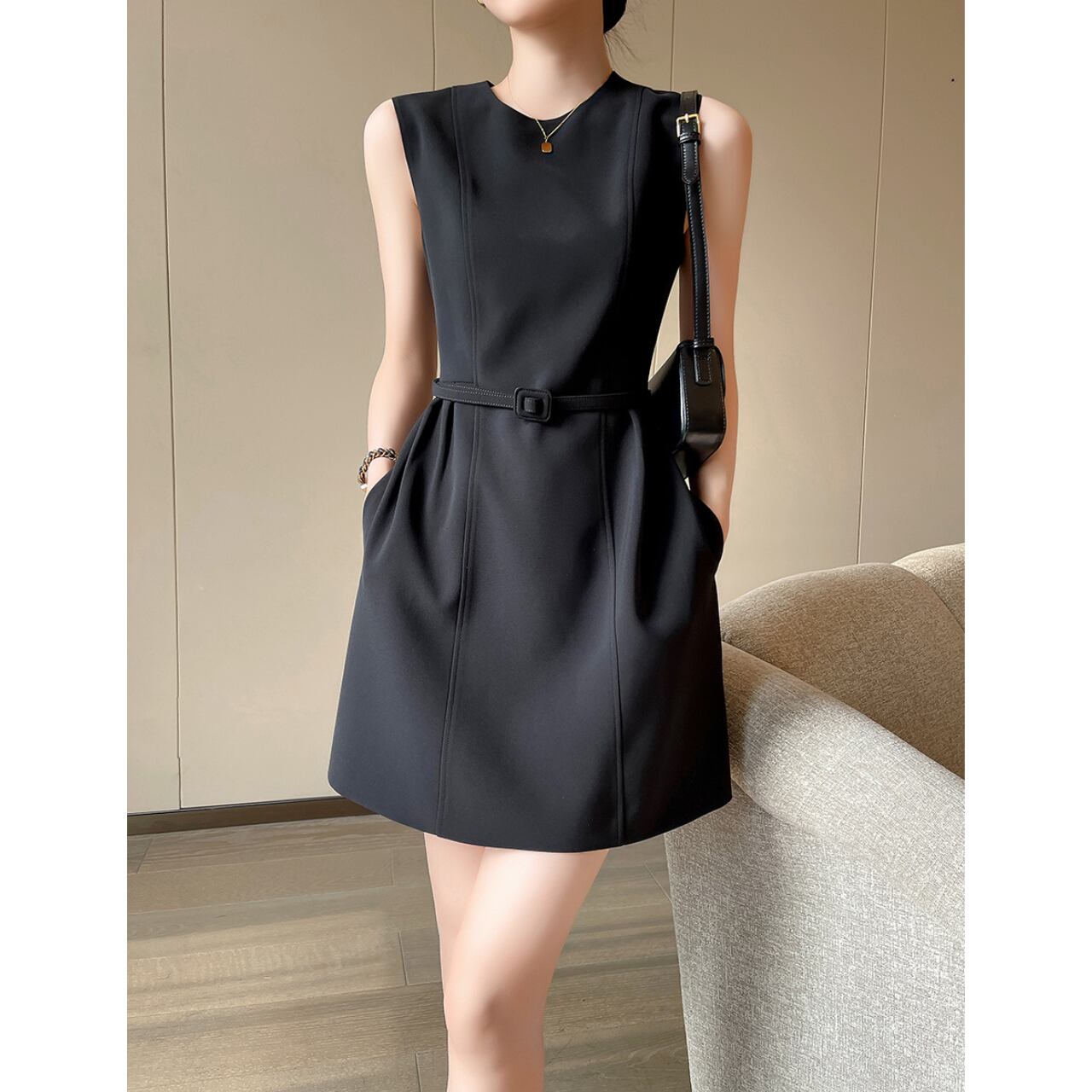 ウエストベルト付きのミニドレスは、シンプルながらも洗練されたデザインが特徴です。