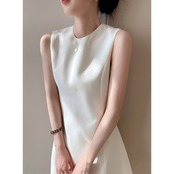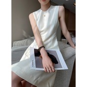 シンプルで洗練されたノースリーブのAラインミニドレス。