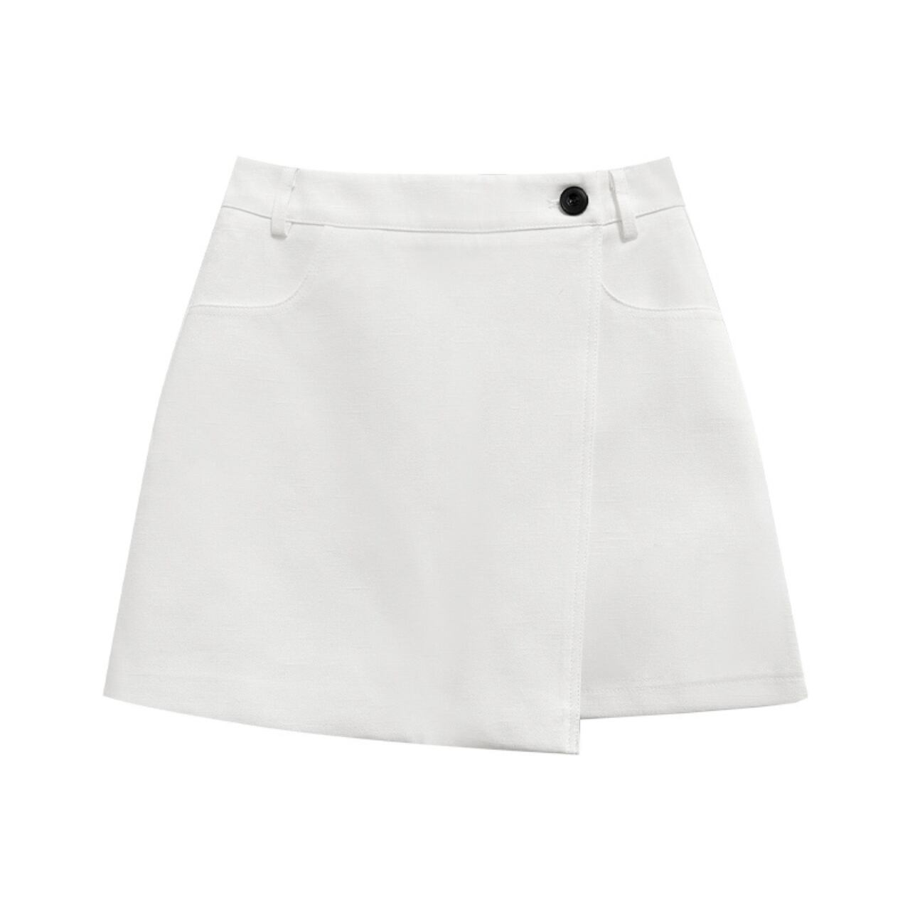 ラップスカート風のデザインが、さりげなく個性を演出します。