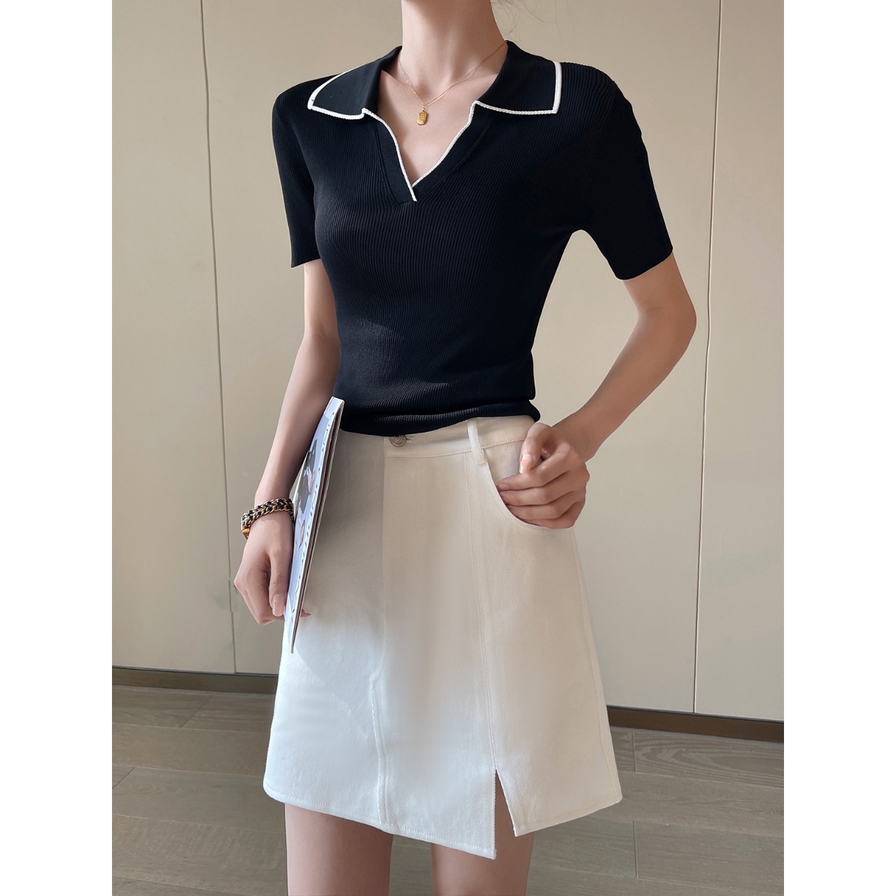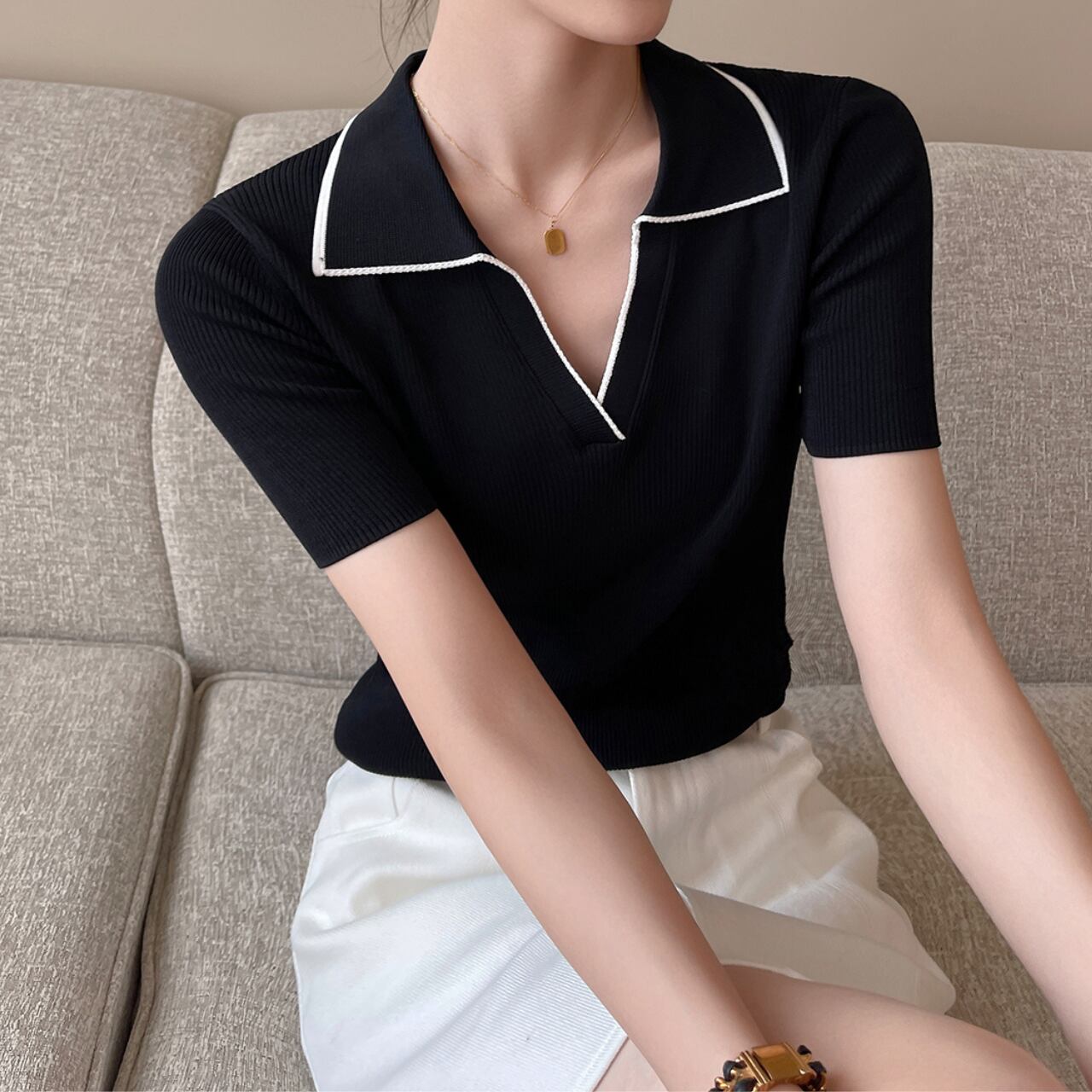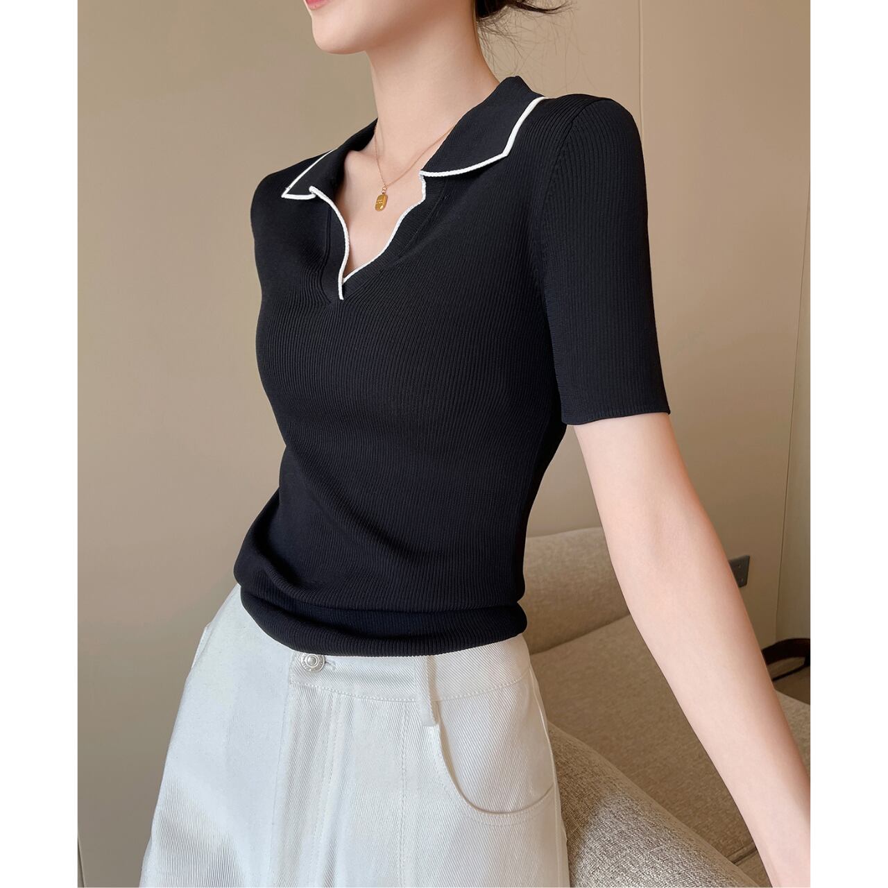 シンプルながらも洗練されたデザインの半袖ポロシャツ。
