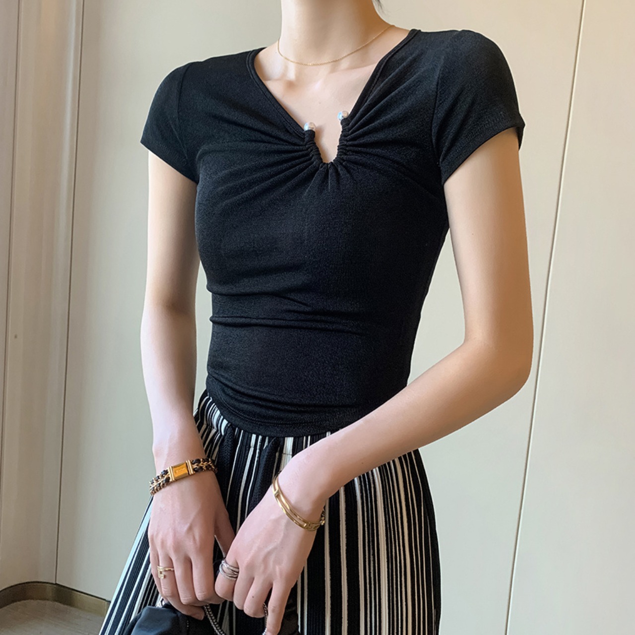 胸元の繊細なプリーツと小さなアクセントが、女性らしい優しさと上品さを演出します。