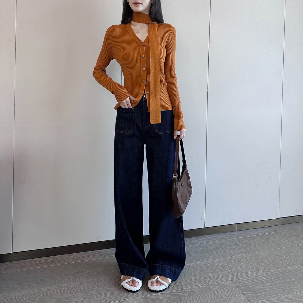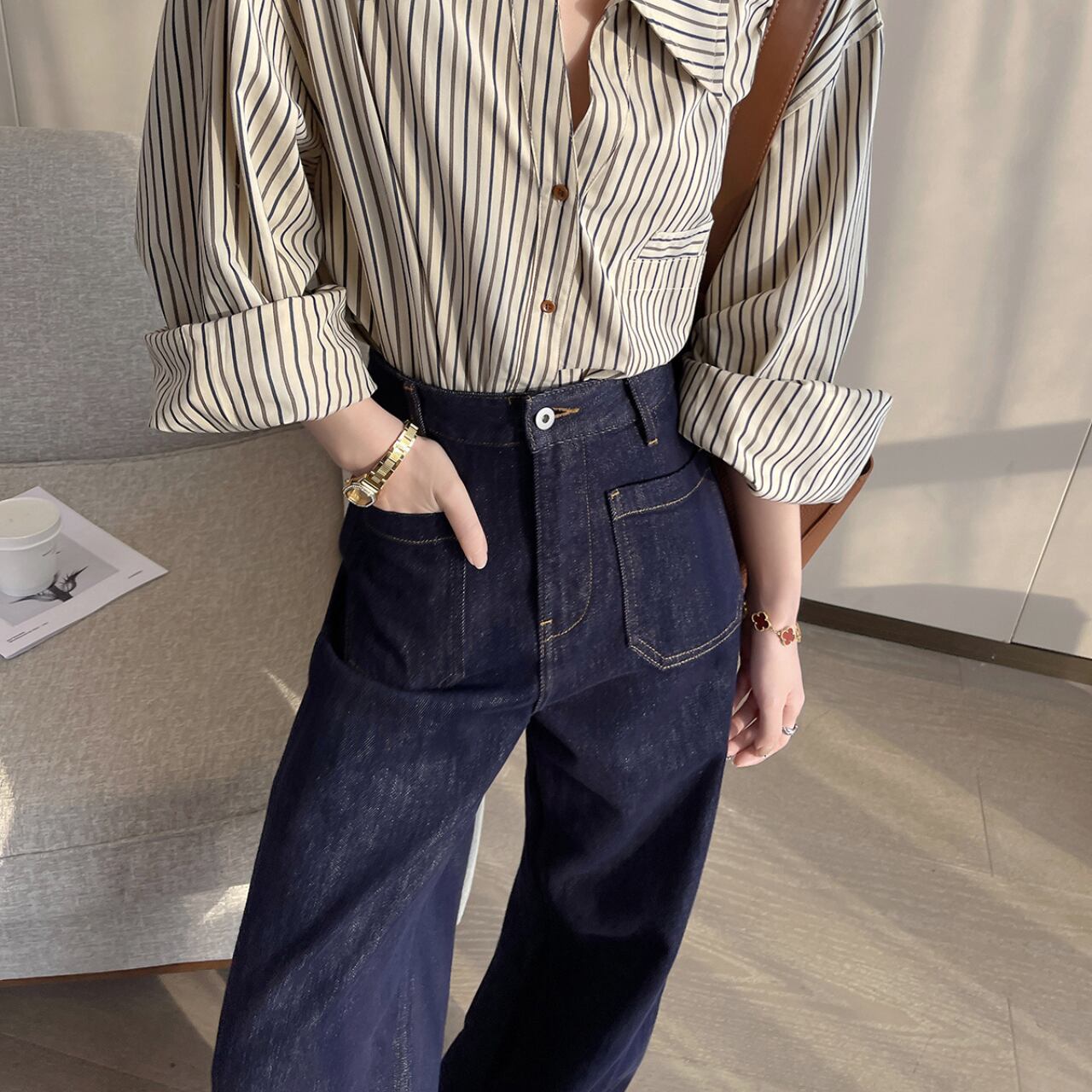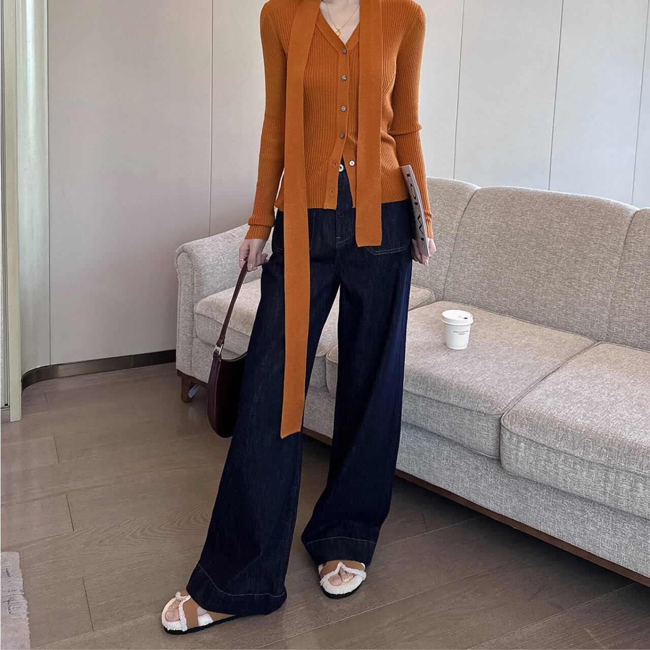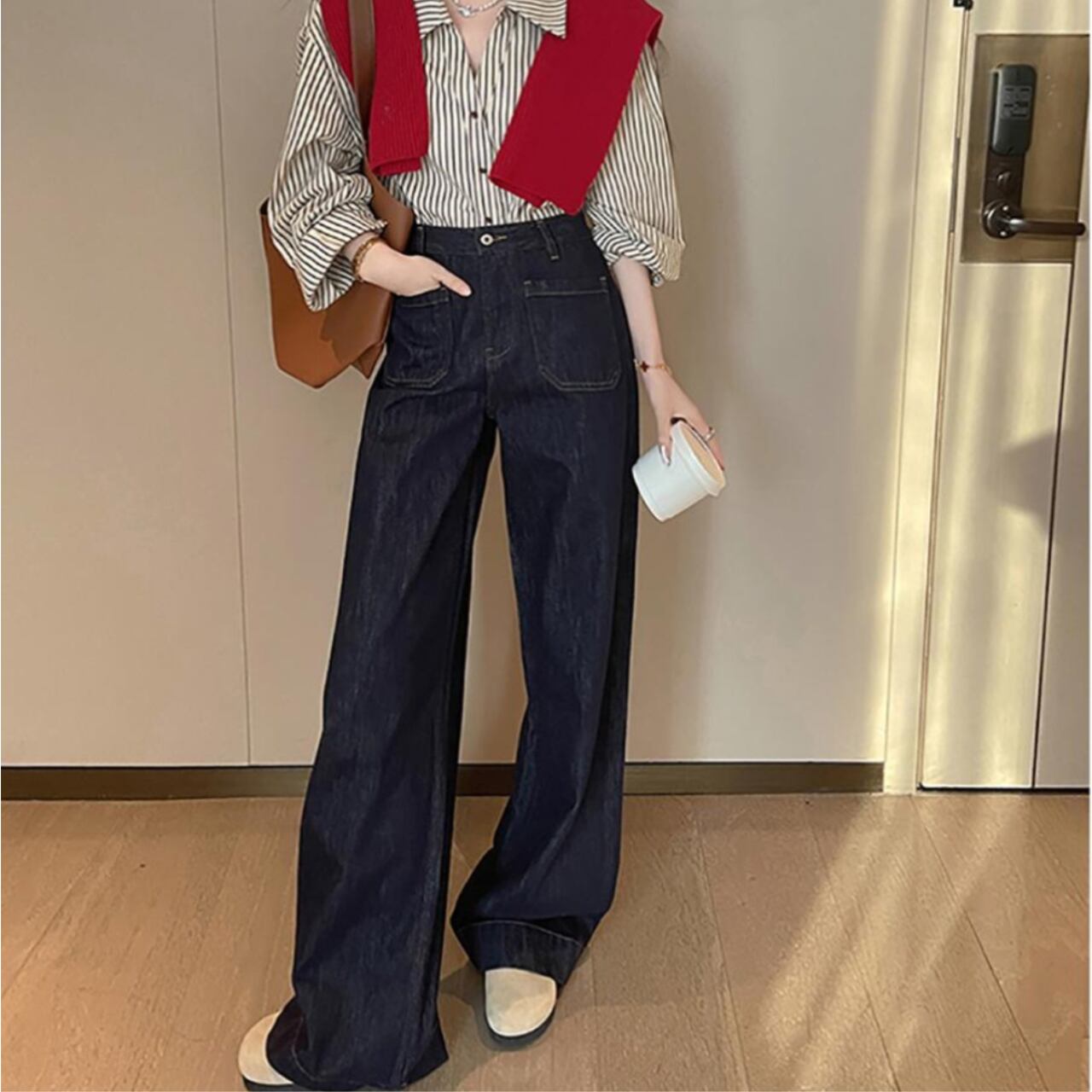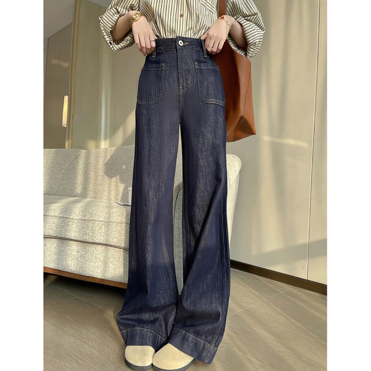 美しく流れるようなワイドレッグシルエットが魅力のデニムパンツ。
