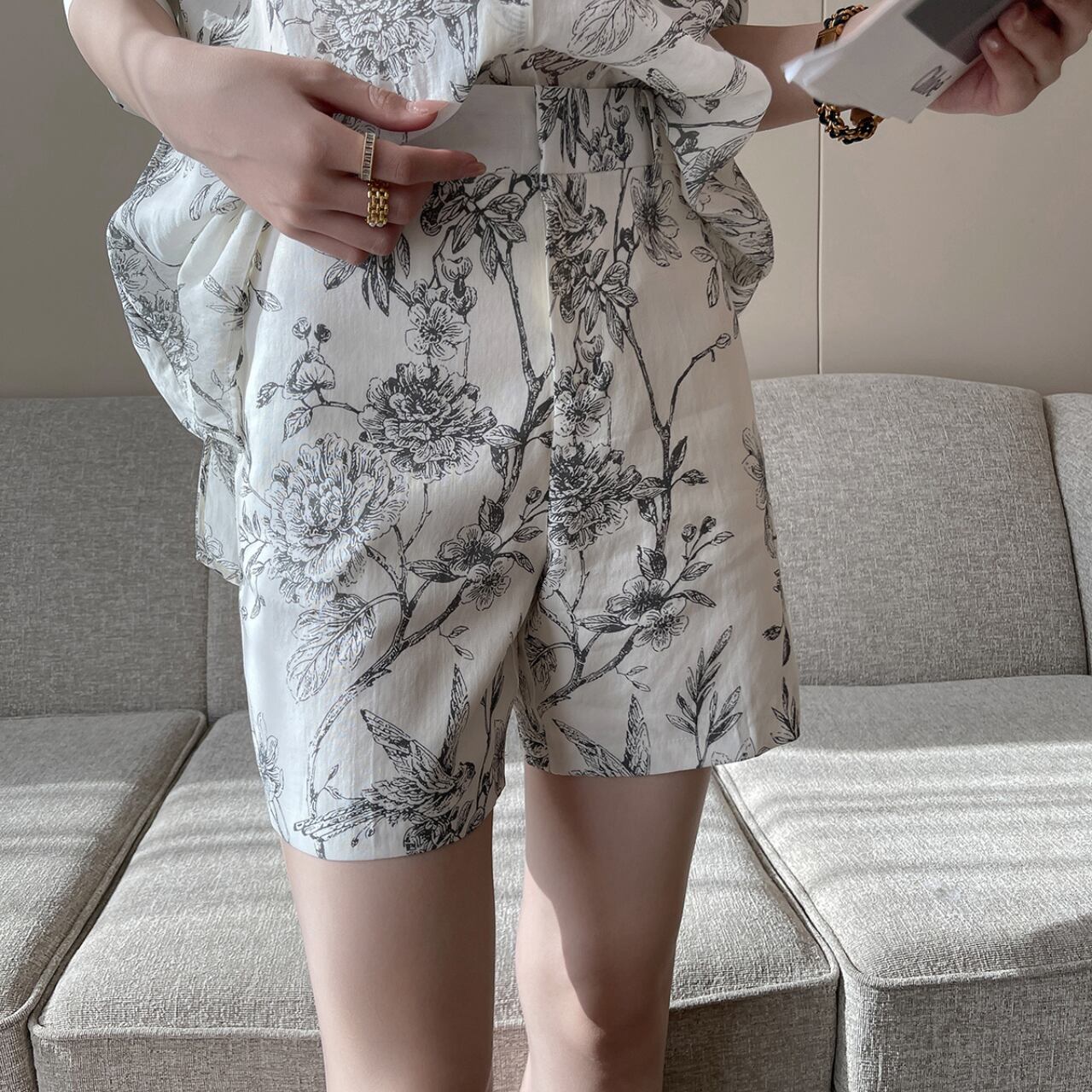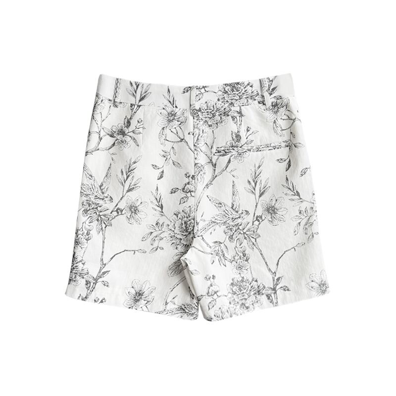 植物モチーフのプリントが美しい、ハイウエストショートパンツ。