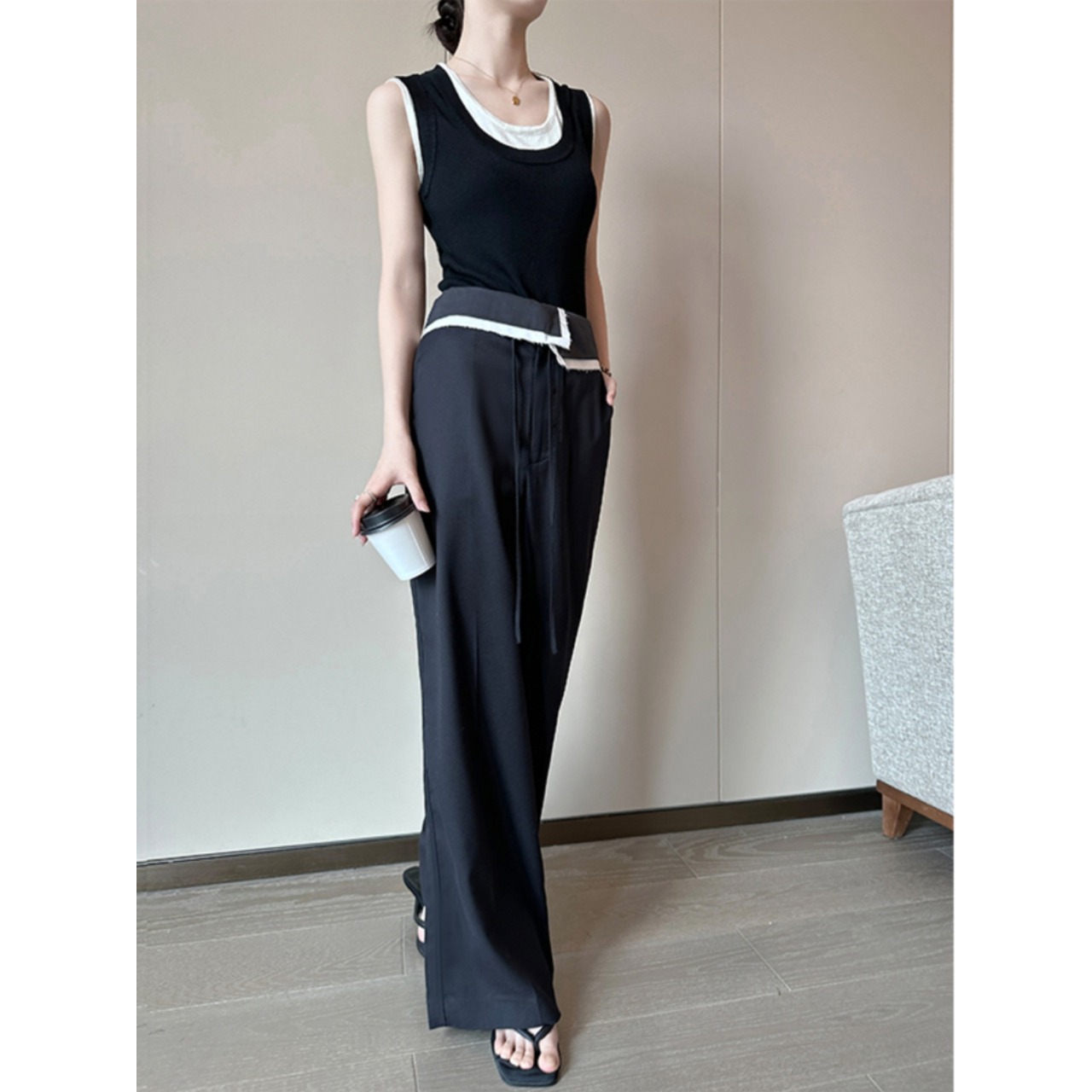着心地の良さとスタイルアップ効果を両立した、ハイウエストワイドレッグパンツ。