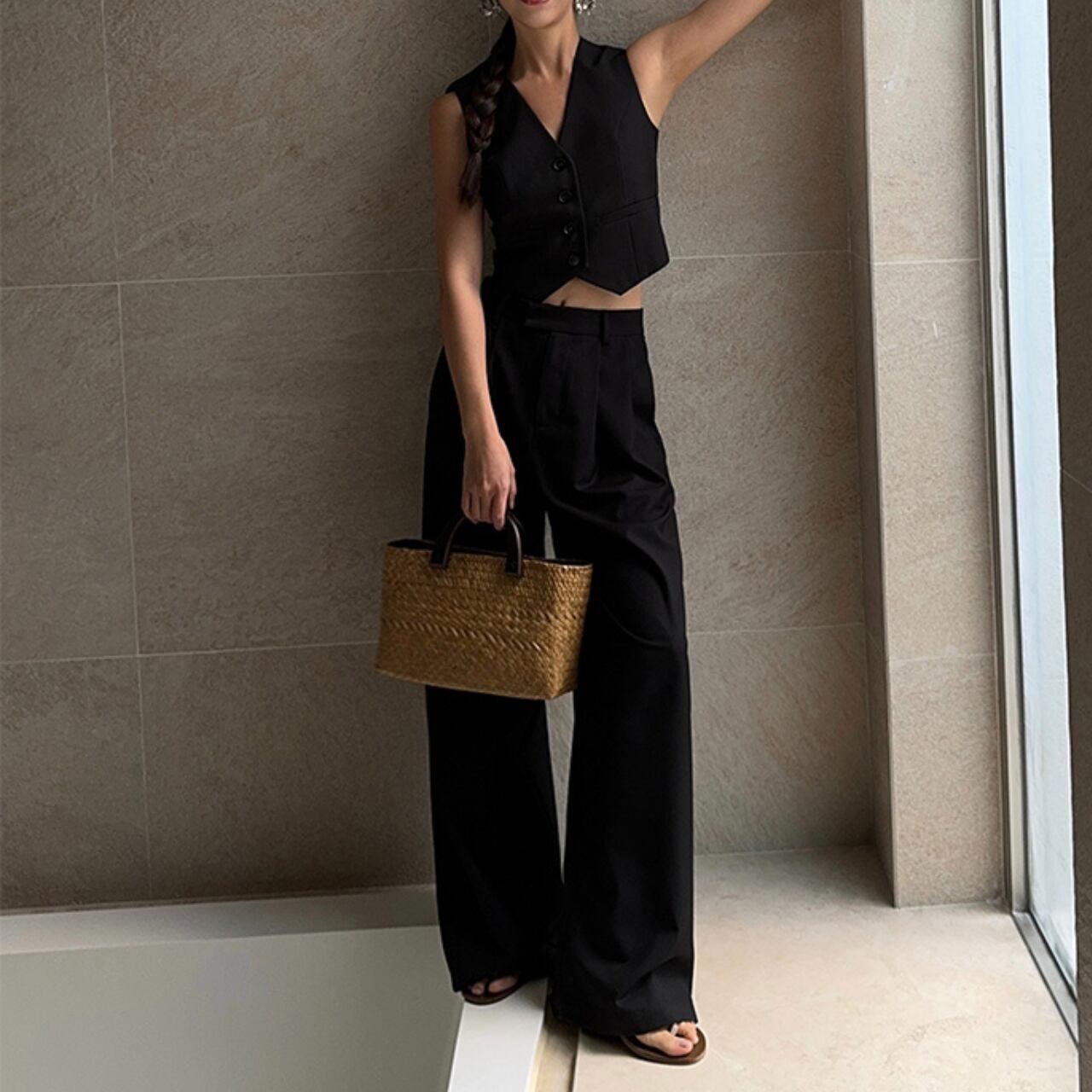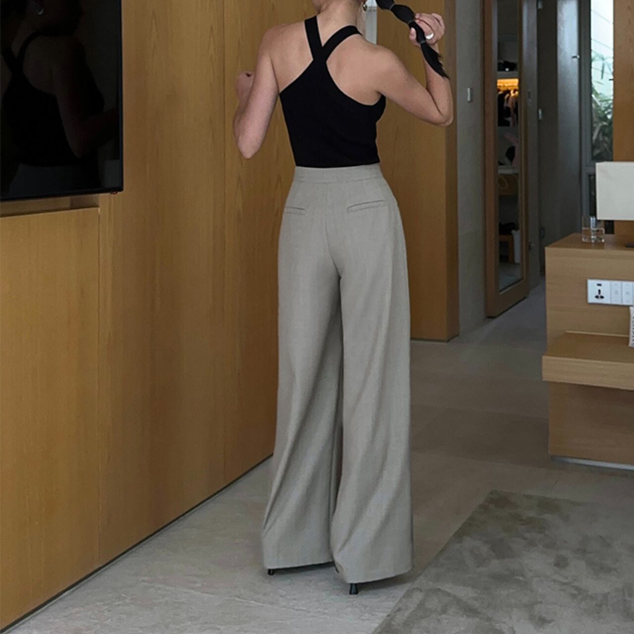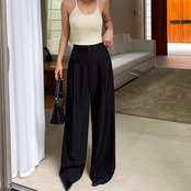 スタイリッシュなハイウエストワイドレッグパンツは、あなたの着こなしをワンランクアップさせます。