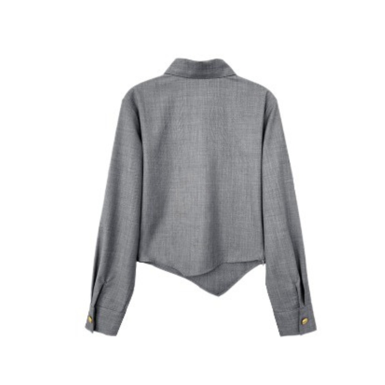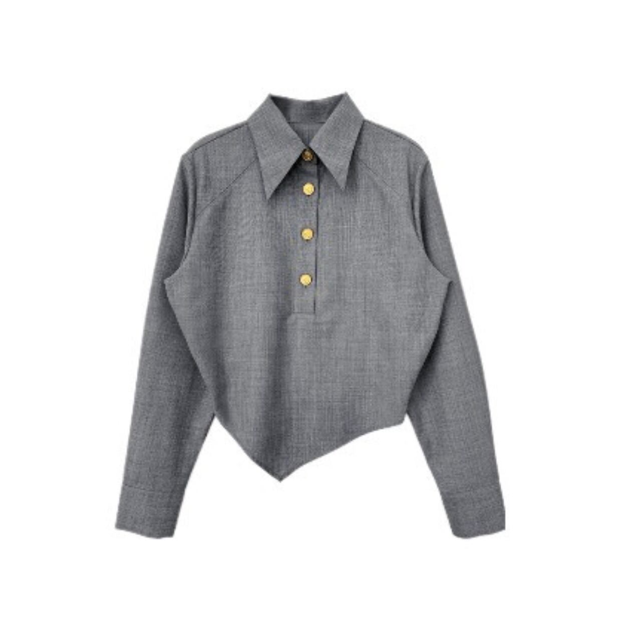 個性的な非対称ヘムラインがポイントの長袖シャツ。