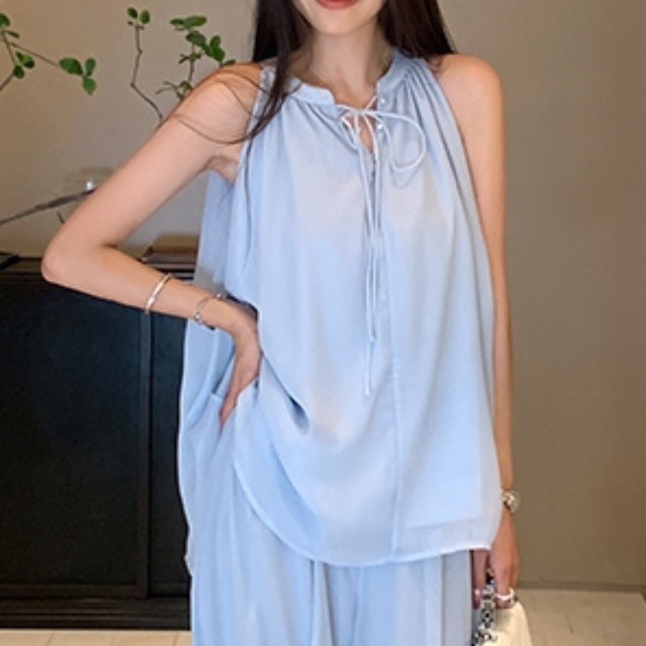 涼しげな雰囲気と女性らしさを兼ね備えたノースリーブキャミソール。