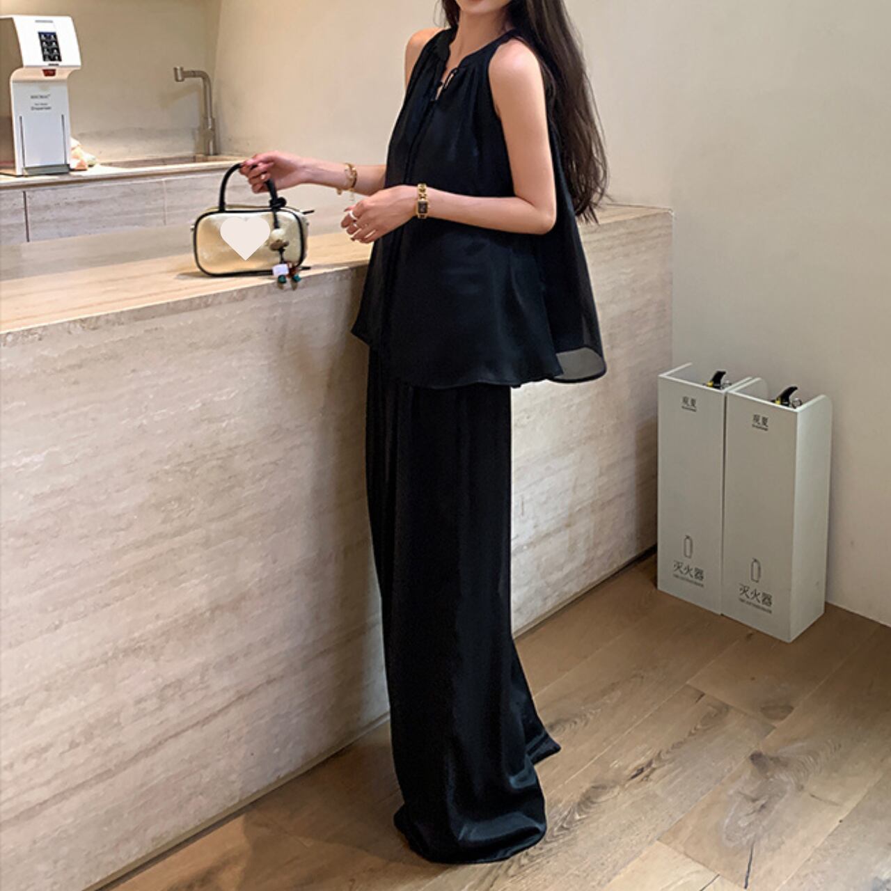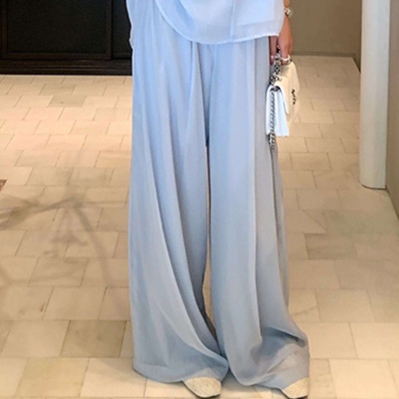 洗練されたシルエットが魅力のハイウエストワイドレッグパンツ。