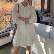 上品なシャツデザインに、ふんわり広がる二重フリル裾が女性らしさをプラス。