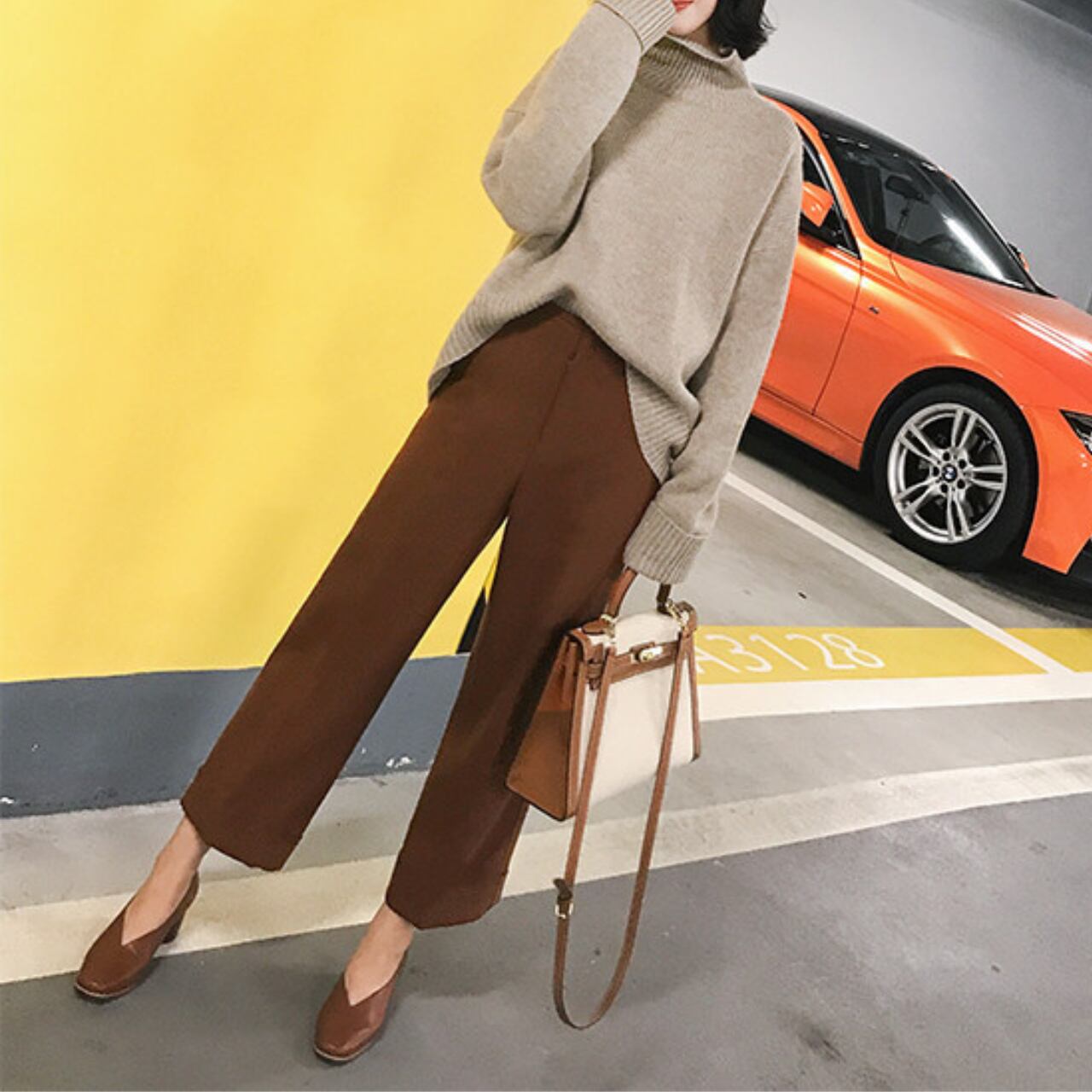 上品な雰囲気を演出するハイウエストワイドパンツ