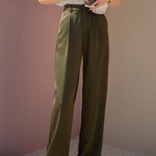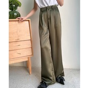 大人のリラックスコーデにぴったりな、光沢感が美しいワイドパンツ。
