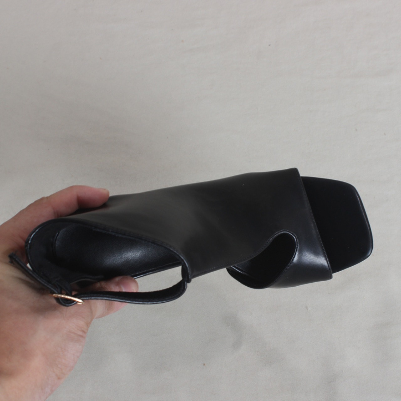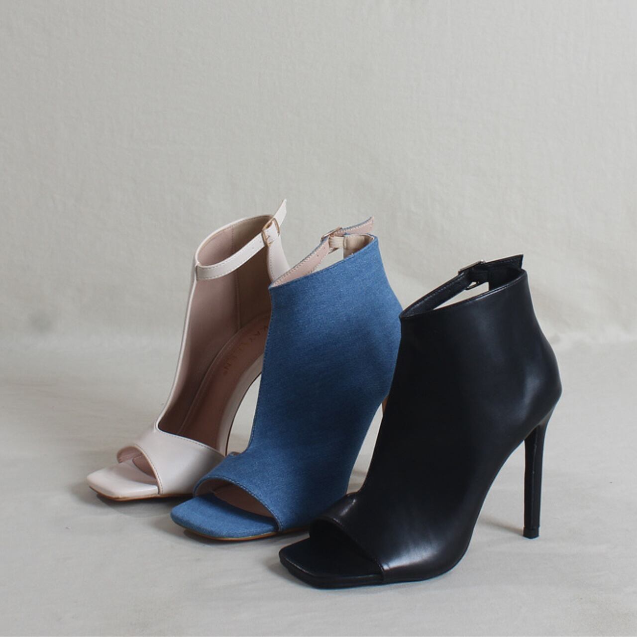 都会的でスタイリッシュな印象のオープントゥブーティ。