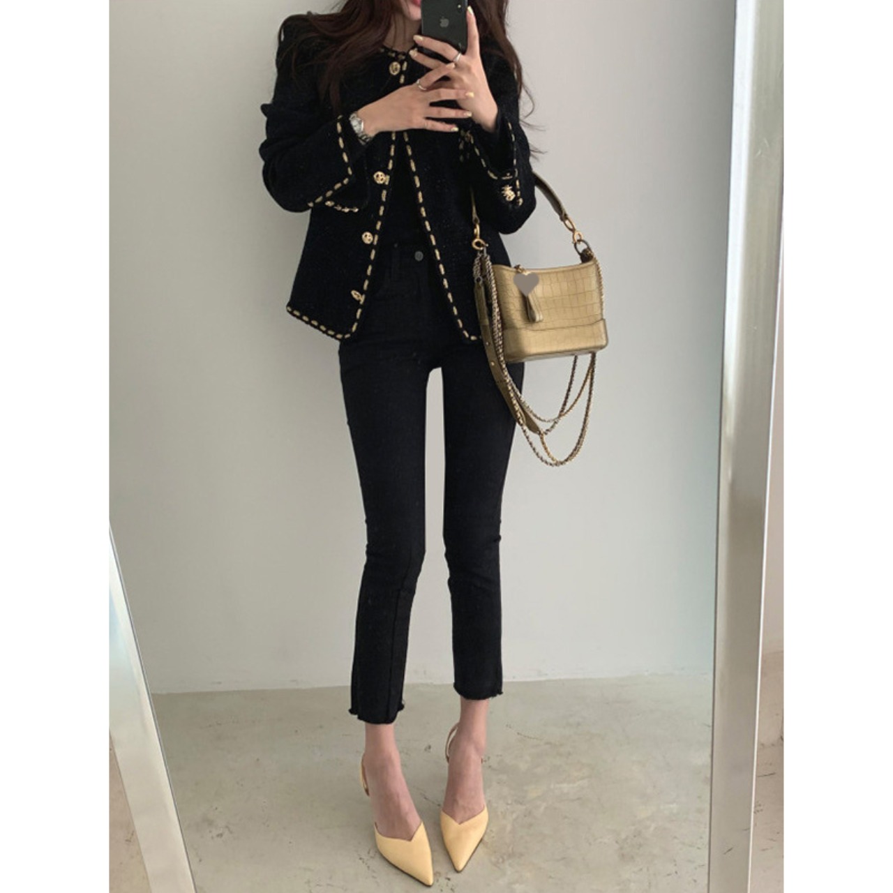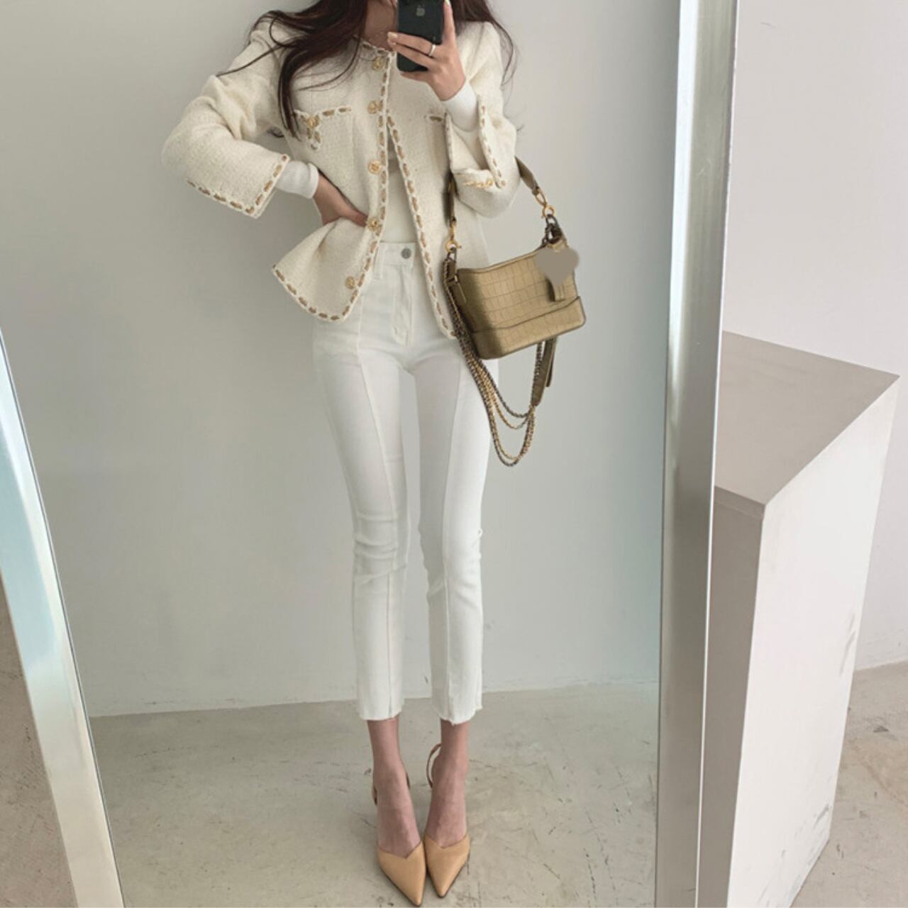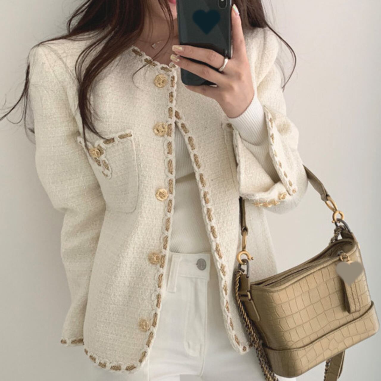 どんなコーディネートにも合わせやすいクロップド丈のジャケット。